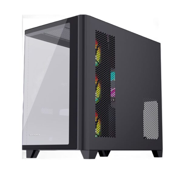 S prozirnim, kaljenim staklenim panelima, ovo kućište pruža elegantan i transparentan pogled na unutrašnjost, ističući vaše komponente i osvjetljenje.