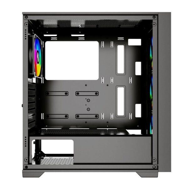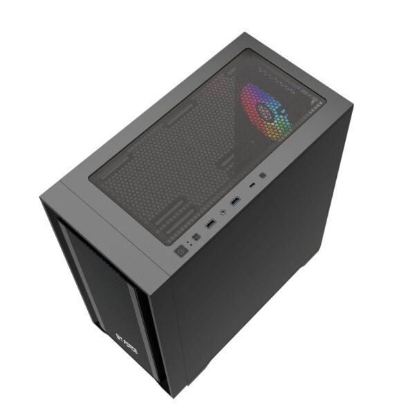 Izrađen od izdržljivog SPCC materijala debljine 0.6mm, predstavlja spoj snage i elegancije. Aluminijski mrežasti prednji panel ostavlja vrhunski dojam uz notu luksuza i osigurava optimalan protok zraka dok bočno kaljeno staklo otkriva snagu Vaše opreme.